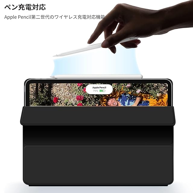 【Apple Pencilの収納&充電】Apple Pencilの収納場所を設けており、Apple Pencilのバッテリーがなくなったら磁力でケースに吸着しながら充電することができます。