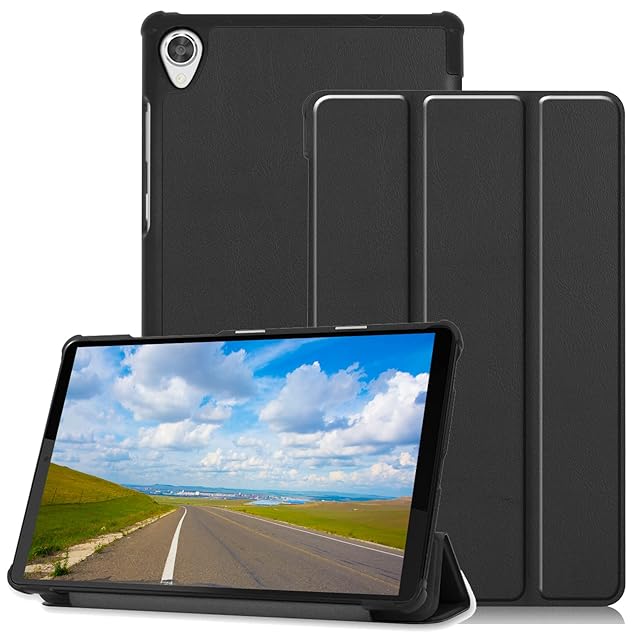 TRkin 対応 Dtab Compact d-42A 适用モデル専用タブレット ケース 超薄型 対応 NTTドコモ dtab Compact d-42A docomo 適用三つ折りスタンド リバウンドマグネティックスマートケース機能付き 衝撃吸収 レザー全面保護型 ケース (ブラック)