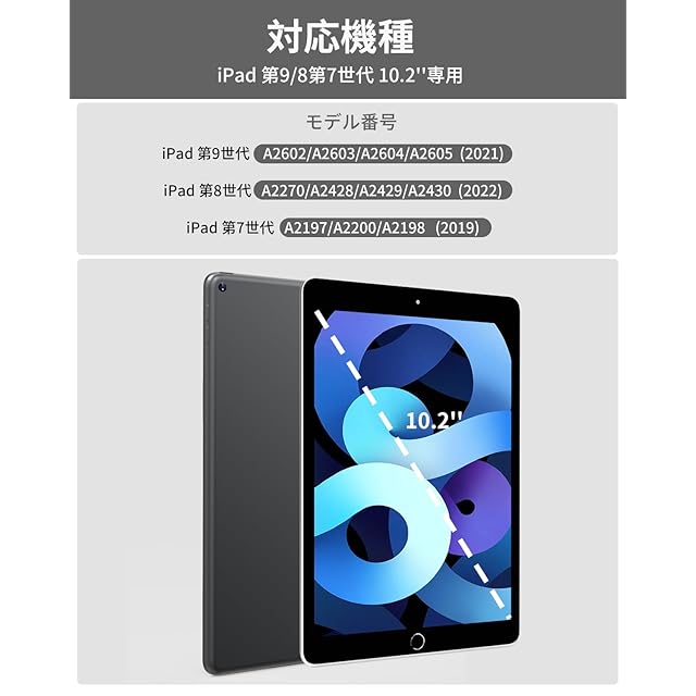 【対応機種】iPad第9世代2021(A2602/A2603/A2604/A2605)、iPad第8世代2020(A2270/A2428/A2429/A2430)、iPad第7世代2019(A2197/A2200/A2198)iPad10.2インチケースに適用します。他のiPadモデルには対応しておりませんのでご注意ください。