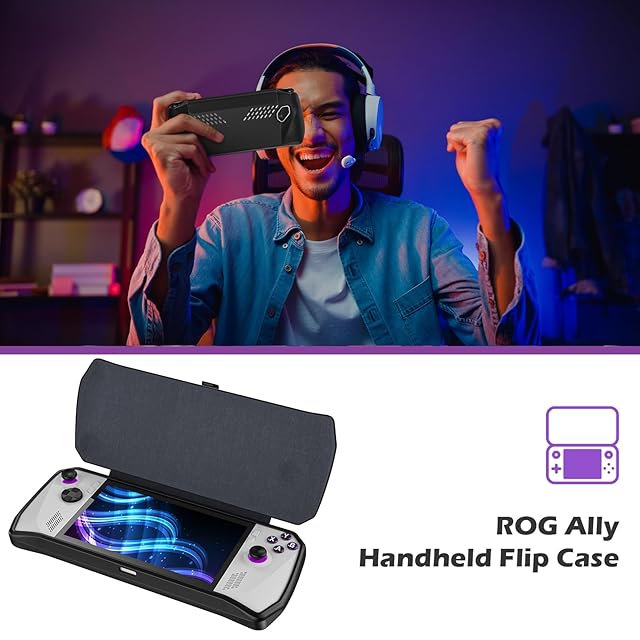 ASUS ROG Ally 2023 対応 ケース フリップケース 軽量 保護カバー 取り外し可能な磁気フロントカバー 滑り止めグリップ 耐衝撃 傷防止