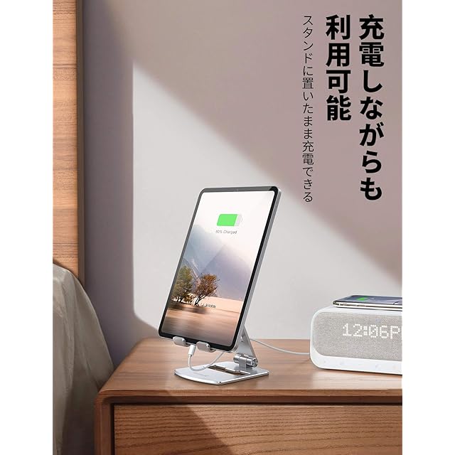 <p><b>✅【対応機種】</b><br>約4-13インチのスマホ, タブレット(2024 2022 2021 アイパッド iPad Pro 12.9 / 7.9 / 9.7 / 10.2 / 10.5 / 10.9 / 11 / mini 2 3 4 / air 1 2 3 4, S9 S8 S7 S6, Note 6 5, 12 mini pro max/12/ 11/ XS Max/ XR/ X 8 7 6 6s Plus)に対応できます。</P> <p><b>✅【強化された軸】</b><br>角度調整のやすさと置く時の安定感を両立するため、軸は最適な強度に調整されます。12.9インチのタブレットを置いでも重さで下がることはありません。安定で最高な角度をあなたに差し上げます。</P> <p><b>✅【細部までこだわる】</b><br>ご端末に接触する面にラバーが付き、大切なご端末を傷から守ります。底面にも滑り止めラバーにより、しっかりと卓上に固定できます。 <p><b>✅【上品な質感】</b><br>高品質のアルミ合金素材を採用し、一定の重量感を持ちます。細かなエッジ処理と艶消し表面処理、シンプルなデザインは上品で高級感を演出します。</P> <p><b>✅【多様なシーンで活躍】</b><br>キッチン・オフィスデスク・ナイトテーブル・食卓に適用。仕事中でもメールやメッセージ受信を確認できるのでとても便利。アニメ、映画、電子書籍、Facetime、zoom会議、在宅ワーク、デスクワーク、オンラインミーティング、オフィスワークを楽しむ時にも活躍しています。折り畳んでコンパクトになり、出張や旅にもおすすめします。</P> 折り畳み式 タブレット スマホ 兼用 スタンド ホルダー 角度調整 stand Lomicall iPad用 stand アルミ 合金製 卓上 縦置き 横置き すたんど タブレット 置き台 固定 おき 立て かけ たてかけfoldable tablet phone stand holder desk table ゲーム用 ゲーミング 充電 テーブル デスク台 立てる 設置 持ち運び zoom会議 在宅ワーク デスクワーク オンライン会議 オフィスワークPad用 両手解放 荒野行動 ipad 子供 音ゲー aluminium あいぱっと iPhoneアイフォン スマートフォン 携帯 充電 おしゃれ アクセサリー iPad Pro 9.7 10.2 10.5 10.9 11 12.9 インチ, 2021 iPad Air 1 2 3 4 air4, iPad mini ミニ4, 第 5 6 7 8 世代 S7 S8 Note 6, Tab, Sony - 銀 シルバー 【アイパッドプロ 11インチ 台 】