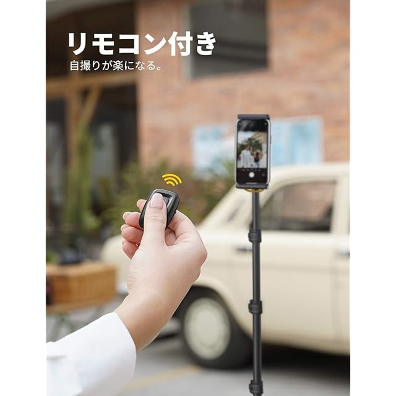 【携帯便利&Bluetoothリモコン付き】折り畳み式ですので、コンパクトに収めることができます。収納後長さは42.5cm、広さは7cm、重さは0.75kgです。収納袋がついているため持ち運びやすいです。また、Bluetoothリモコンが付属して、一人でも撮影ができます。旅行に大便利。