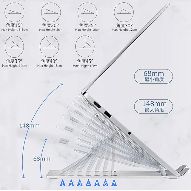 【7段階高さ調節可、手軽に仕事】 パソコンの高さを調節でき、正しい姿勢について、高さを調整し、目線を高め、長時間の仕事中の頭や肩の軽減してくれて。