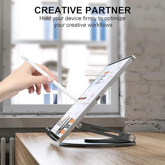 回転式 iPad スタンド: 360°回転するベースを備えたこの iPad スイベル スタンドは、タブレットをデスクトップ モニターに変え、描画、書き込み、読み取り、共有を簡単にします。