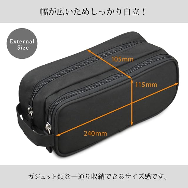 ACアダプタなどのガジェット類をまとめて収納できる大容量収納ポーチです。