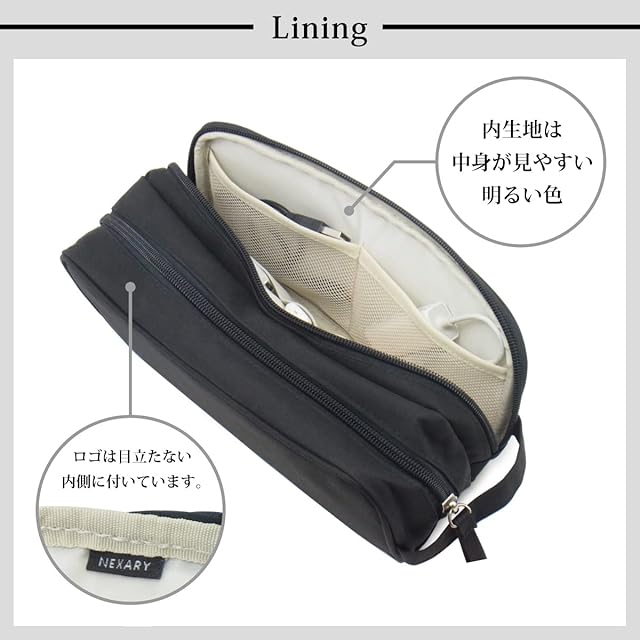 NEXARY ガジェットポーチ ガジェットケース ACアダプタ バッテリー 撥水 (ブラック)