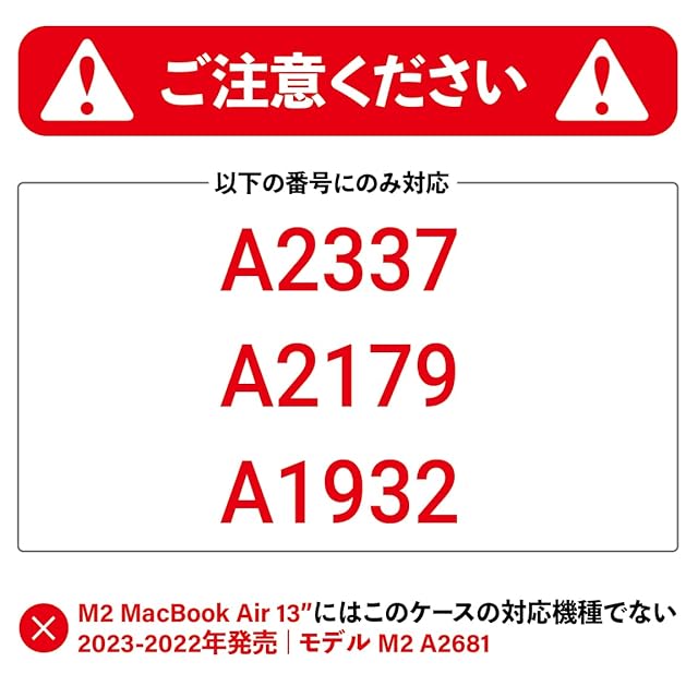 ❶【対応機種】新型の13インチ MacBook Air ( 2022-2018 )に対応。モデル: M1 チップA2337 / A2179 / A1932 *ラップトップの底面にあるモデル番号をご確認ください(A****) ★MacBookに対応したサイズであること大事です。モデルによって高さや横幅、奥行などが異なります。