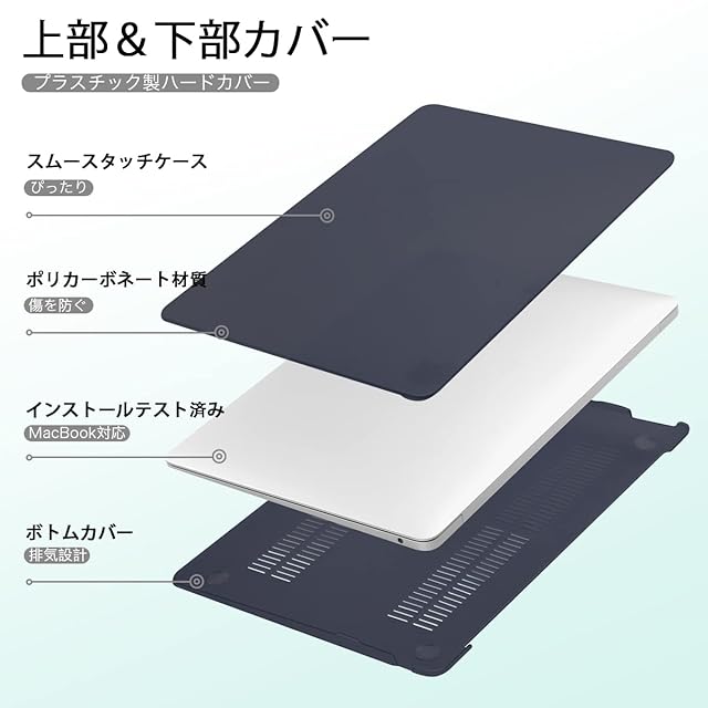 【対応機種】 <br><b>MacBook Pro 13インチ M1チップ搭載モデル 2019年-2022年モデル (Model番号:A2251/A2289/A2338 M1 M2)</b> <br>必ずご注文前に対応機種とモデル番号(Axxxx)をご確認ください。 <br> <br>商品特徴: <br> <br>1. ハードシェルカバー パチっとハメるだけで簡単取り付けのクリアカバー。薄型軽量で外観を損なうことなくしっかりと守ります。 <br>2.高級PC材料: ポリカーボネートはプラスチック素材のなかで群を抜いた耐衝撃性を持ち、硝子の100倍もの強度があると言われています。 大切なMacBookを、デザイン性も損なわずしっかり守ってくれる頼もしいカバーケースです。 <br>3.底面のカバーには空気口がついているため、通気性が良く、熱が放散してくれます。また、底面に4つの滑り止めパッドがついており、デスクとの間に隙間ができ、熱を流しやすい構造です。滑りやすいデスク等でも安定感のある作業が可能です。サイド部分はカバーできて、各種端子の差し込み口がある部分は切り抜かれています。カバーを装着したまま、USB Type-Cポート、ヘッドフォンジャックポートにアクセスすることができます。 <br>4.【日本語配列キーボードカバー付き】高級のエンジニアリンググレードの無毒シリコーン素材を採用し、キズがつきにくいし、滑りにくいし、耐久性があります。0.1mmまで超薄型で画面を傷つけず、カバーをつけていても違和感のないタイピング感を実現できます。 <br>5.【収納ケース】ケーブル、充電器などのPC周辺機器をすっきり収納できます。軽量かつコンパクトなサイズ感に加え、手触りの良いPUレザー製持ち手付き、持ち運びが便利です。見た目はシンプルで、通勤、出張、通学など色々なシーンで活用できるPCケースです。 <br>6.【OTG機能搭載】USB Type C & USB 変換アダプタ、 外付けHDD、USBメモリ、マウス、キーボード、ゲームコントロール、カードリーダーなどのUSB機器をTYPE C端子のスマホやタブレットに接続可能です。手元のUSB周辺機器を最大限に活用しましょう。 <br> <br> <br>梱包内容: <br>-1* 高品質ハードシェルカバー(上部のケースと下部のケースを含み) <br>-1* 収納ケース <br>-1* シリコンキーボードカバー(JIS 配列) <br>-1* 液晶保護フィルム <br>-1* USB Type C & USB 変換アダプタ