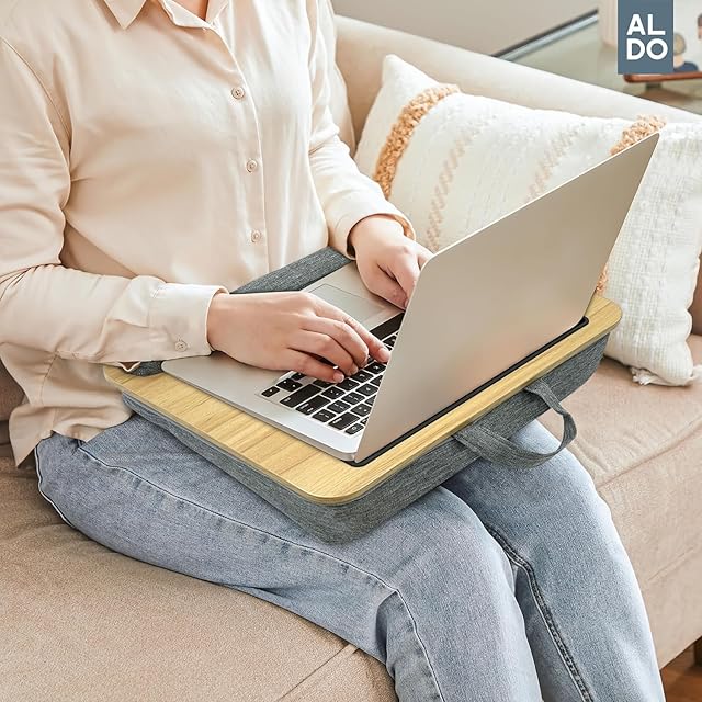 トレードワン(TRADE ONE) 膝上テーブル テーブルクッション タブレットスタンド付き ノートパソコン コンパクト 幅40×奥行32×高さ5cm PCスタンド ドリンクホルダー付き 持ち運び便利 グレー 30744 | AVENIR
