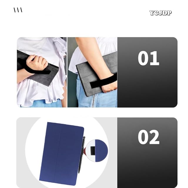 【考え抜かれたデザイン】:ペンホルダー付きのタブレットケースは、電子ペンを時間差で収納でき、紛失の心配が少ないです。フロントカバーの裏側には、手に紐をかけやすいゴム製のハンドストラップが付いており、片手でしっかりと持つことができるので、混雑した地下鉄やバスの中でも常に快適なグリップ感で使用でき、落下や紛失を防止します。