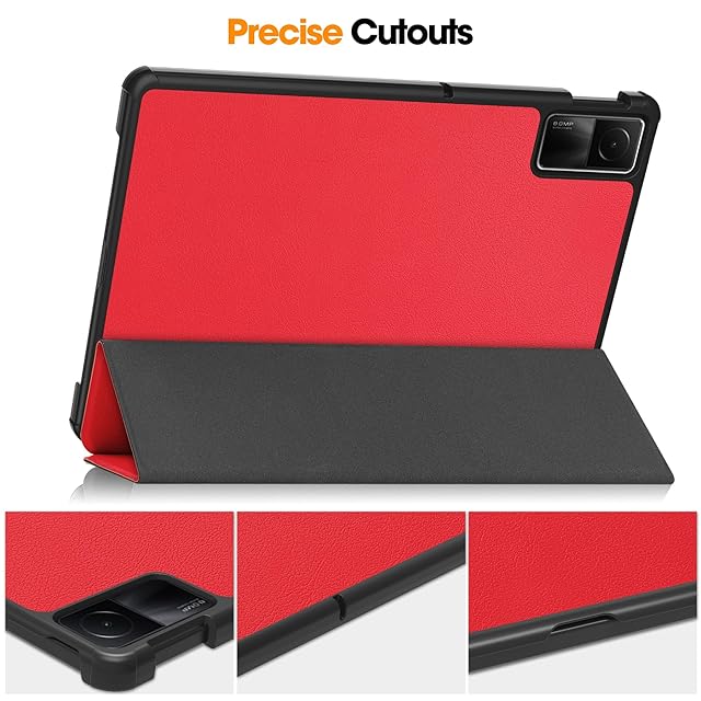 For Redmi Pad SE 11インチ ケース 【larfbulroc】軽量 薄型 PU レザー スマート カバー 耐衝撃 傷防止 ハード 背面 ケース 三つ折り スタンド オートスリープ ウェイクアップ 機能 レッドミー Pad SE 11インチ 対応 (赤)