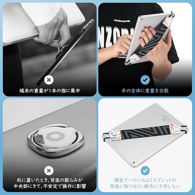 タブレットバンド Dadanism シリコンフック タブレット用ハンドバンド ハンドストラップ タブレットホルダー 片手持ち 落下防止 簡単脱着 9-11インチ対応 ipad air 11 ipad pro 11 2024 ipad 10 10.9" iPad 9/8/7 10.2" iPad Air 5/4 10.9" iPad Pro 11 お花柄 | AVENIR