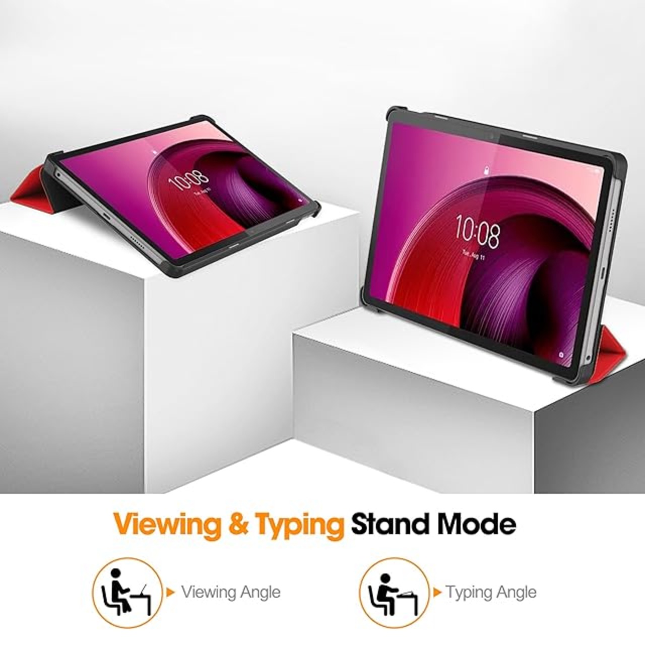 【安定な位置】:人間工学に基づいたスタンド角度で両手を解放されております。動画視聴(65°)とタイピング(30°)の2つのアングルで使えて、お好きな角度でLenovo TAB7 / Lenovo Tab M10 5G / Lenovo Tab M10a 5Gを楽しむことができます。