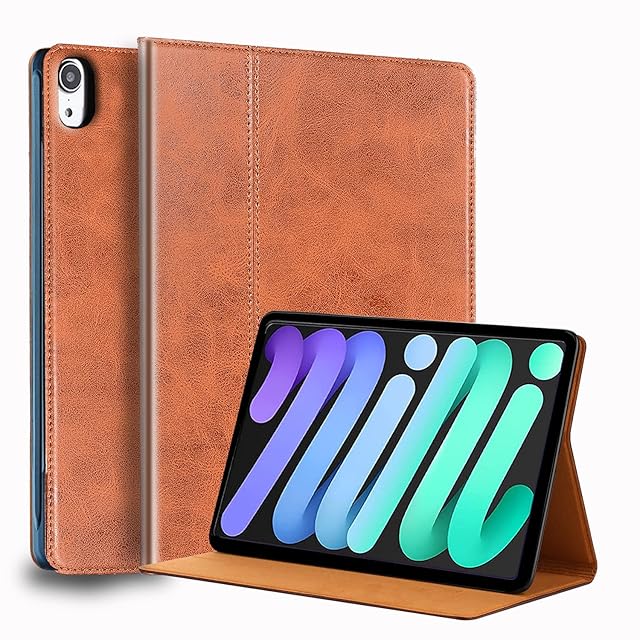 Gexmil ケース iPad Mini 第7世代 A17 Pro 2024, iPad Mini 第6世代 (2021),8.3 インチ,高級レザー製 耐衝撃性 軽量 防指紋 防滑,オートスリープ/ウェイク,アジャスタブルスタンド,ブラウン | AVENIR