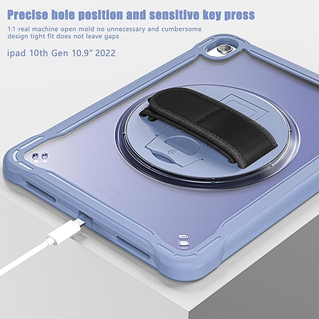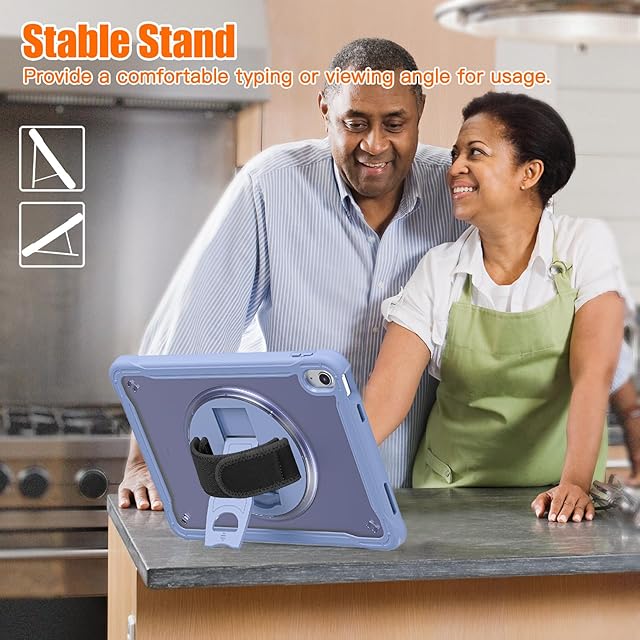 肩掛け iPad 10 /iPad 11 ケース 360度 回転 ハンドベルト 2025 iPad 第11世代/ 第10世代ケース 11インチ 10.9インチ タブレット カバー 縦置き 横置き スタンド ショルダーストラップ付き 頑丈 斜め掛け ペン収納 耐衝撃 TPU+PC 半透明カバー, 紫灰 | AVENIR