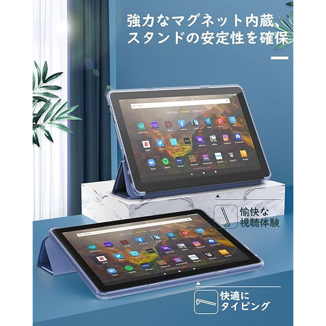Fire HD 10 2023 ケース Dadanism Fire HD 10 PLUS 2023 ケース Fire HD 10 カバー Fire HD 10/10PLUS 2023適用 カバー タブレットケース 全面保護型 三つ折りスタンド 無色半透明TPUバック ソフト PUフロント オートスリープ スマートカバー 耐衝撃 Navy Blue | AVENIR