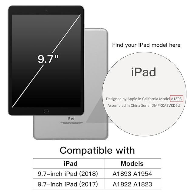 [互換性] iPad 9.7インチ(第6/5世代、2018/2017モデル)用の特別デザインです。対応モデル:A1822/A1823/A1893/A1954。おデバイスの裏面にあるモデル番号をご確認ください