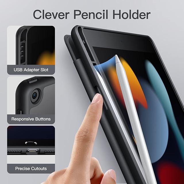 [Pencilホルダー搭載] Pencilを簡単に収納・取り出しが可能。USBアダプタを置くための専用スロット。デバイスと一緒に持ち運ぶことができ、楽に手に取ることができます(PencilとUSBアダプタは付属していません)