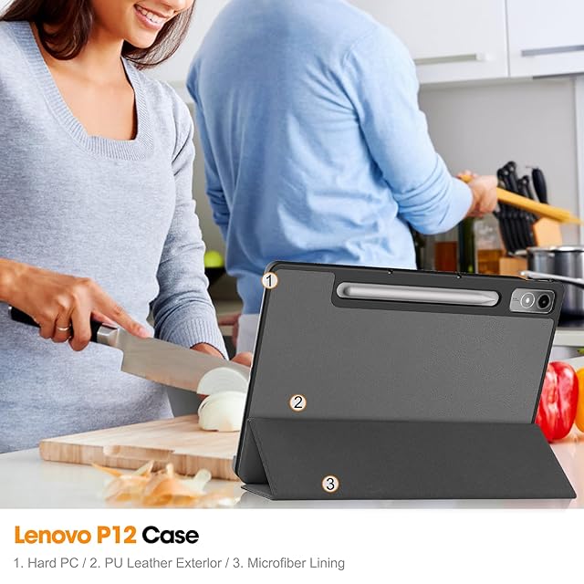 Lenovo Tab P12 ケース Lenovo Tab P12 12.7インチ ケース Lenovo Tab P12 カバー【Trocnet】Lenovo Tab P12 ケース 三つ折 スタンド機能付き 手帳型 オートスリープ機能 超薄型 耐汚れ 耐久性 内蔵マグネット開閉式 全面保護 衝撃吸収 (グレー)