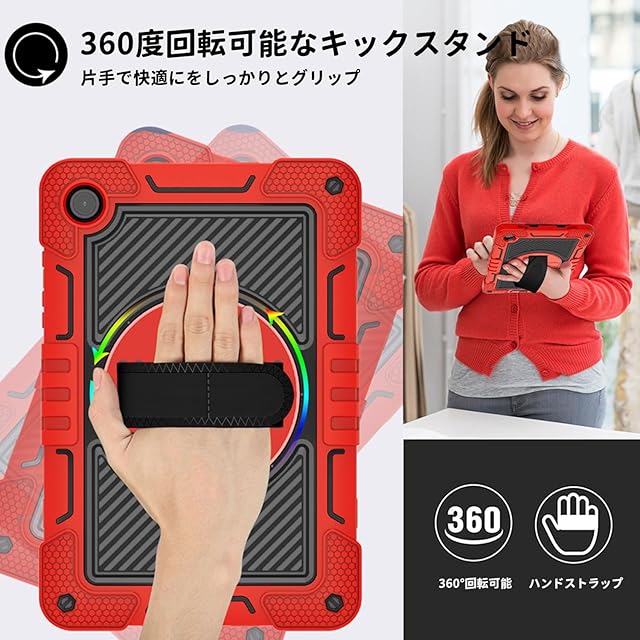 【360°回転スタンド】:スタンド持たずに操作できるだけでなく、映画鑑賞、絵描き、ゲーム、仕事など幅広い用途で縦置き&横置きを自由に調節可能です,柔らかいストラップと一緒に、屋外での旅行、仕事、子供と遊ぶときも快適にお使いいただけます。