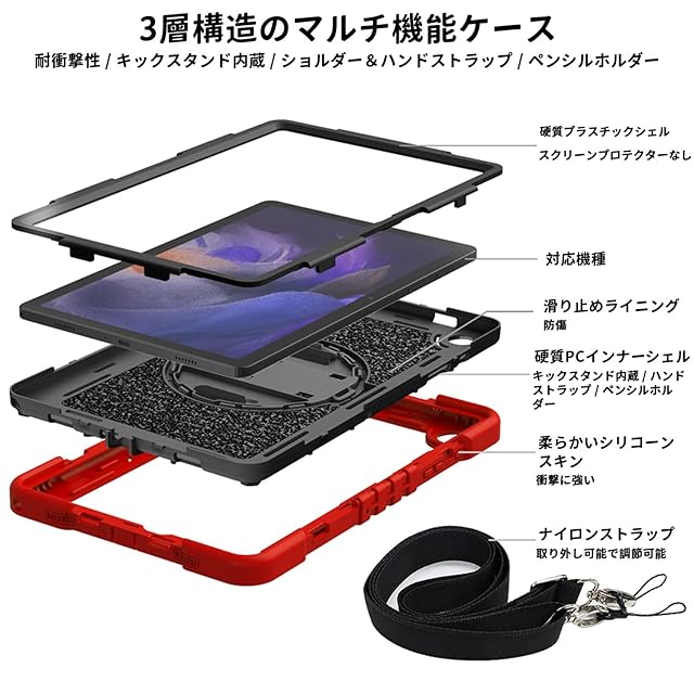 <p><b>全面保護</b></p> <p> </p> <p>耐久性があり、破損しにくく、こすり、汚れ、衝突から設備を保護します。</p> <p> </p> <p><b>完璧なカットアウト</b></p> <p> </p> <p>精密な孔打ち抜きより、タブレットにピッタリフィットし、ケースをつけたままで、全ての機能をアクセスができます。</p> <p> </p> <p><b>プレミアム素材採用</b></p> <p>頑丈なPC素材の保護層でがっちり固め、コーナーは柔らかいシリコン素材の衝撃吸収がガ一ドの三層構造により、大切なタブレットコンピュータをしっかりと守ります。</p> <p> </p> <p><b>持ち易い</b></p> <p> </p> <p>軽量設計ので、厚い感じもなく、持ち運びしやすいし、長く持っても手が疲れる感じもありません。また手触りの良い素材で、使っていて気持ちがいい。</p> <p> </p> <p><b>製品保証</b></p> <p></p> <p>①万が一、問題がございましたらご連絡を頂けると迅速に対応致します。お客様にご満足頂けるよう精一杯頑張ります。万がお問い合わせ内容に応じて代替品交換または返金が可能です。ご安心して購入ください。</p> <p></p> <p>②ご連絡の方法:アカウントサービス内の「アカウントサービス」→「注文履歴」→「販売元」→「質問する」から、お気軽にお問合せ下さい。</p>