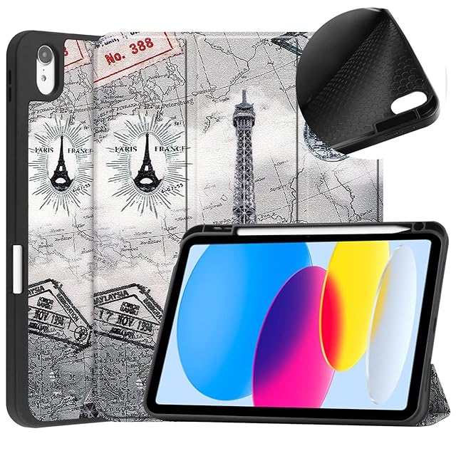 iPad 10 2022ケース手帳型,軽い 綺麗三つ折りマルチスタンド機能付きスタンドスマートカバー,スタイリッシュ 2022 iPad 第10世代10.9インチカバー,Apple Pencil 収納 アップルペンシル充電できるで,全面保護傷つけ防止耐衝撃 オートスリープカバー (iPad 10 2022, E 色) | AVENIR