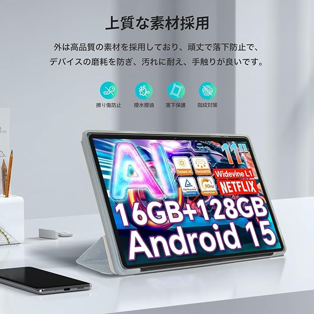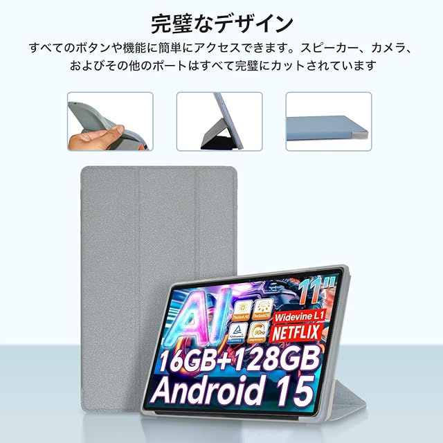 TECLAST P50 AI 11インチ 用 ケース タブレットカバー 保護ケース スタンド機能付き 【HUKWIMO】 薄型 超軽量 全面保護 高級PU スクラッチ対策 レザー 耐汚れ 耐久性 [シルバー]