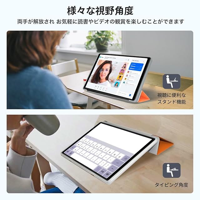 TECLAST T60AI 12インチ 用 ケース タブレットカバー 保護ケース スタンド機能付き 【HUKWIMO】 薄型 超軽量 全面保護 高級PU スクラッチ対策 レザー 耐汚れ 耐久性 TECLAST T60AI 11 対応 ケース カバー [オレンジ] | AVENIR