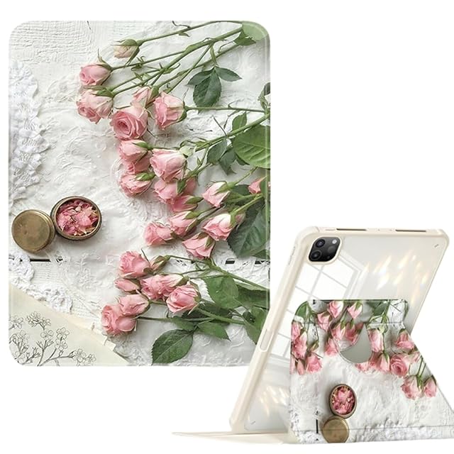 360度回転式 iPad Pro 11 インチ 第 4/3/2/1 世代 ケース 透明 ペン収納 花柄 大理石柄 可愛い 縦置きカバー ペンホルダー付き iPadPro11インチ(2022/2021/2020/2018)保護 カバー 星空 マーブル柄 女性 人気 軽量 薄型 半透明 保護ケース かわいい オリジナル お洒落 ブック式, 花柄 | AVENIR
