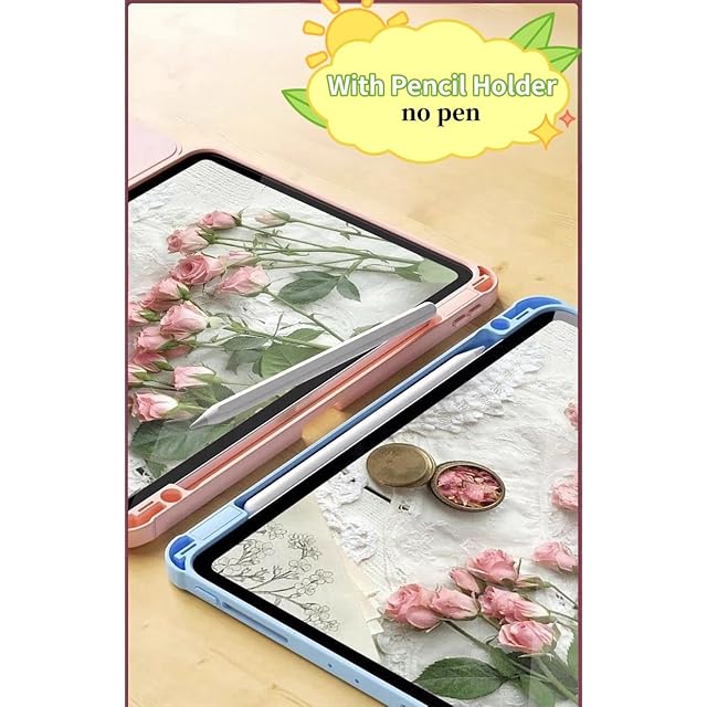 iPad Air 11インチ M2 2024/ iPad Air 第5世代 第4世代 ケース 360度回転式 透明 ペン収納 大理石柄 可愛い 縦置きカバー ペンホルダー付き iPad Air6 Air5 Air4 カバー 星空 マーブル柄 女性 人気 軽量 薄型 半透明 保護ケース かわいい オリジナル お洒落, 虹-ピンク