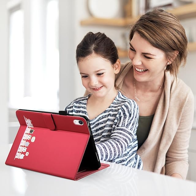Qribo iPad mini7 ケース iPad mini6 ケース iPadミニ6 ケース シンプルなのに可愛いデザイン エンボス加工猫柄 うれしい気持ち 8.3インチ対応 iPad mini 第6/7世代 タブレットケース iPad mini 7 ケース 複数の視野角 スリムフィット iPad mini A17 Pro ケース 防水 の耐久性 滑り防止 美しい 贈り物 友達 - レッド