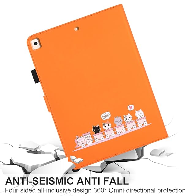 Qribo iPad 9世代 ケース iPad air3 ケース iPad Pro 10.5 ケース シンプルなのに可愛いデザイン エンボス加工猫柄 うれしい気持ち 10.2インチ対応 iPad 9/8/7 ケース iPad 10.2 ケース 複数の視野角 スリムフィット iPad 10.2 2019/2020/2021 モデル タブレットケース iPad air 第3世代 ケース 保護カバー 防水 の耐久性 滑り防止 美しい 贈り物 友達 - オレンジ | AVENIR