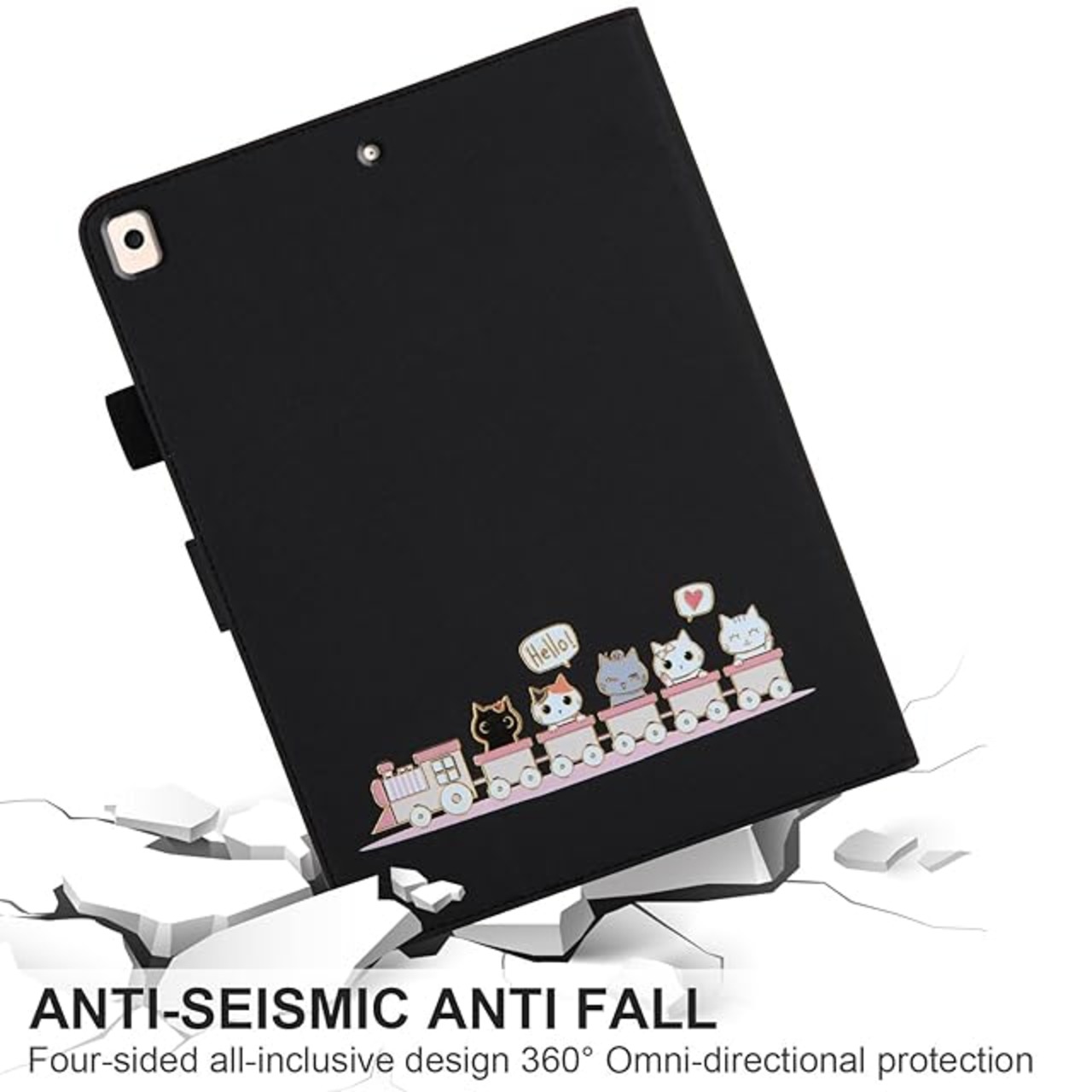 Qribo iPad 9世代 ケース iPad air3 ケース iPad Pro 10.5 ケース シンプルなのに可愛いデザイン エンボス加工猫柄 うれしい気持ち 10.2インチ対応 iPad 9/8/7 ケース iPad 10.2 ケース 複数の視野角 スリムフィット iPad 10.2 2019/2020/2021 モデル タブレットケース iPad air 第3世代 ケース 保護カバー 防水 の耐久性 滑り防止 美しい 贈り物 友達 - 黒 | AVENIR