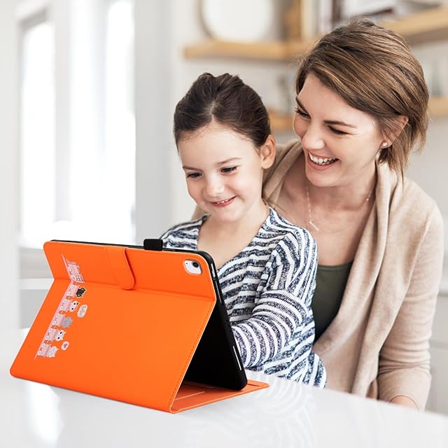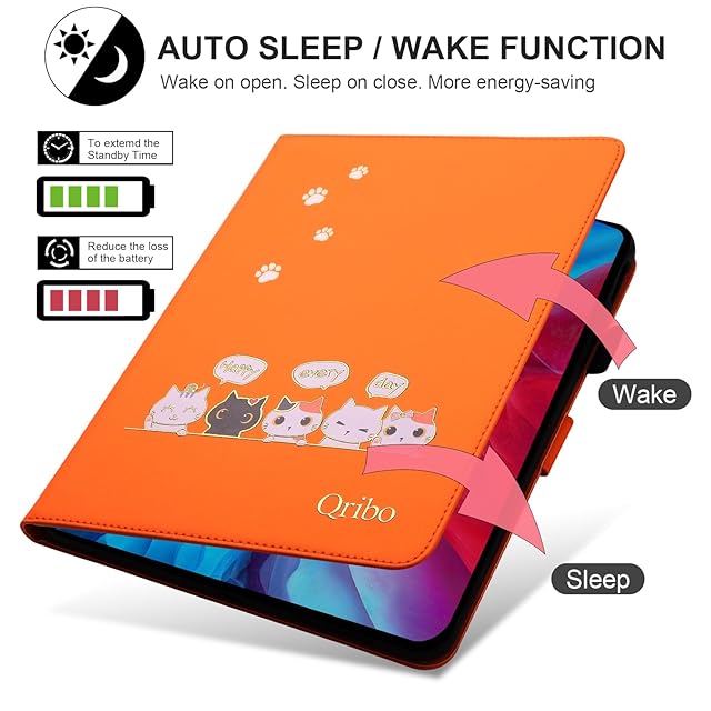 Qribo 対応 iPad Air 13インチ ケース (M3/M2、2025/2024) iPad Pro12.9 ケース (2022/2021/2020/2018) シンプルなのに可愛いデザイン エンボス加工猫柄 うれしい気持ち 複数の視野角 スリムフィット iPad air 13インチ タブレットケース 保護カバー 防水 の耐久性 滑り防止 美しい 贈り物 友達 - オレンジ