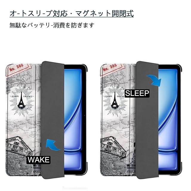 【 仕様 】<br> ■ 対応機種:iPad Air 第4世代 2020(A2324A2072 A2316 A2325),iPad Air 11インチ M3 2025 (A3267 A3270), iPad Air 11インチM2 2024(A2902 A2903 A2904),iPad Air 第5世代 2022(A2588 A2589 A2591)<br> ■ セット内容:ケース×1<br> ■ ■ セット内容:ケース×1<br> ■ 材質:表面:合成皮革、裏地:ポリエステル、本体装着部:TPU(熱可塑性ポリウレタン)<br> ■ カラー:ブラック、ネイビー<br> ※簡易包装のため、白箱になっており説明書などが入っておりません。<br> 【 説明 】 ■ 弾力性と硬さを併せ持つTPU素材が、iPad Air 第4世代 2020(A2324A2072 A2316 A2325),iPad Air 11インチ M3 2025 (A3267 A3270), iPad Air 11インチM2 2024(A2902 A2903 A2904),iPad Air 第5世代 2022(A2588 A2589 A2591)への傷や衝撃を和らげます。<br> ■ 合成皮革のフラップに抗菌処理を施し、菌の繁殖を抑制します。<br> ■ 傷や汚れが付きにくいソフトレザー素材を使用しています。<br> ■ 液晶画面部分を保護するフラップが付いています。フラップを閉じるとスリープモードになり、開けるとスリープから復帰します。<br> ■ 不使用時に液晶画面部分を保護するフラップが付いています。フラップを閉じるとスリープモードになり、開けるとスリープから復帰します。<br> ■ フラップはマグネットで簡単に留めることができます。<br> ■ ケース内側は本体を傷つけにくい起毛素材を採用しています。<br> ■ 本体装着部の縁が液晶画面を覆わず、見やすく操作しやすい設計です。<br> ■ ケースを装着したままで液晶画面の確認、本体の操作、各種ボタン操作、Lightningコネクタへの接続が可能です。<br> ■ ケースを装着したままで写真撮影が可能です。<br>【対応機種】iPad Air 第4世代 2020(A2324A2072 A2316 A2325),iPad Air 11インチ M3 2025 (A3267 A3270), iPad Air 11インチM2 2024(A2902 A2903 A2904),iPad Air 第5世代 2022(A2588 A2589 A2591) 通用です。<br> 【擦り傷防止】傷や汚れが付きにくいソフトレザー素材を使用しています。弾力性と硬さを併せ持つTPU素材が、軽量で耐久性があり。iPad への傷や衝撃を和らげます。<br> 【スタンド機能】カバーを折れる仕様にデザインして、折巻きしてスタンドになれて、二つの置く角度調整できて、両手解放で動画観賞や、タイピング、ゲームなども快適にご利用頂けます。<br> 【オートスリープ機能】 オートスリープ機能でカバーを開ける閉めることで電源自動的にオン・オフなります。マグネット内蔵されているためカバンに入れてもカバーが勝手に開けることを心配必要なくしっかり閉められます。<br> 【ぴったり着装】専用設計された全面保護ケースとなっているため、ケースを装着したまま電源ボタン、音量ボタン、写真を撮る、充電等すべての機能にアクセスできます。デザインはファッションですから学生やビジネスマンやサラリーマンなどにとても合います。<br> 【安心サポート】万が一、商品に不良や不具合があった場合や質問がございましたらご連絡を頂けると迅速に対応致します。<br>