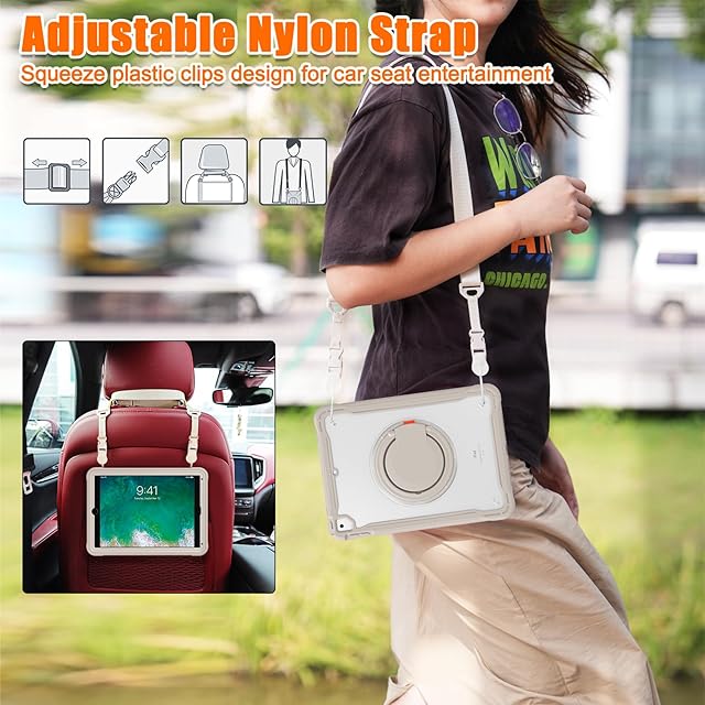 【調節できるショルダーベルト】肩掛けバッグや車の後部座席のエンターテイメント用などシーンにあわせて調節・取り外し・伸長可能なショルダーストラップ。ビジネス、アウトドア、学校、家事など様々なシーンで大活躍。