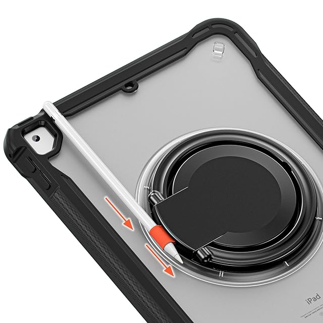 縦置き 横置き iPad 第6世代 5世代 9.7インチ ケース 肩掛け 360°回転持ち手 ペン収納 iPad5 iPad6 Air2 Pro9.7 カバー ショルダーストラップ付き ハードPC +シリコン リングスタンド 耐衝撃 半透明 背面カバー つや消し (iPad5/iPad6/Air2/Pro9.7, 黒) | AVENIR