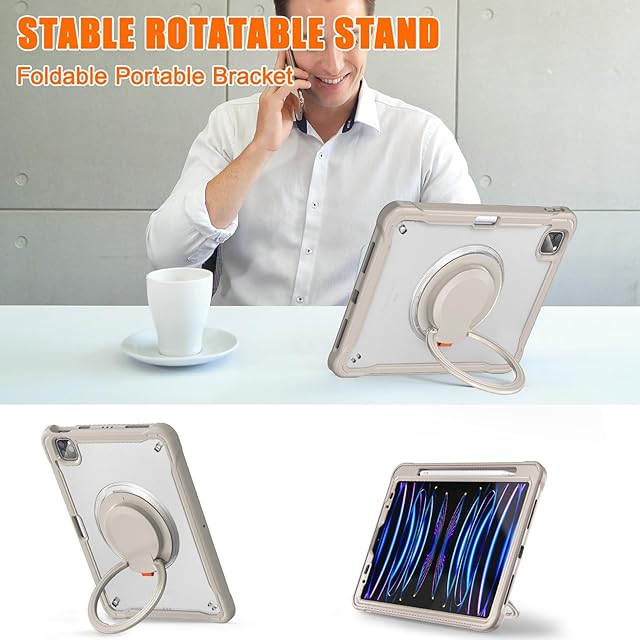 縦置き 横置き iPad Air 11 2025/2024 /iPad Air4 2020/ Air5 2022 ケース 肩掛け 360°回転持ち手 ペン収納 iPad Pro11 第4 3 2 1 世代 カバー ショルダーストラップ付き ハードPC +シリコン リングスタンド 耐衝撃 半透明 背面カバー つや消し