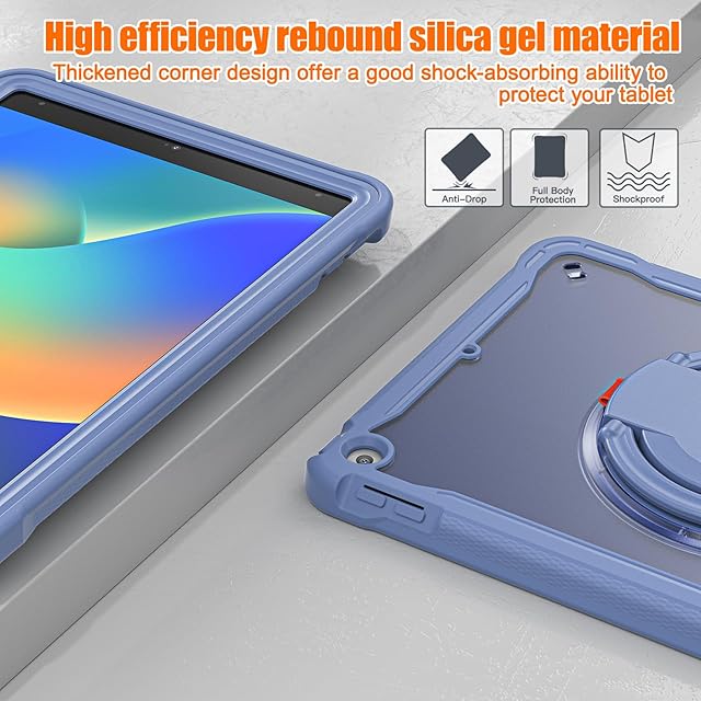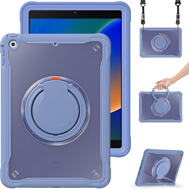 縦置き 横置き iPad 10.2 第 7 8 9世代 ケース 肩掛け 360°回転持ち手 ペン収納 iPad7 iPad8 iPad9 カバー ショルダーストラップ付き ハードPC +シリコン リングスタンド 耐衝撃 半透明 背面カバー つや消し (iPad7/iPad8/iPad9, 紫灰) | AVENIR