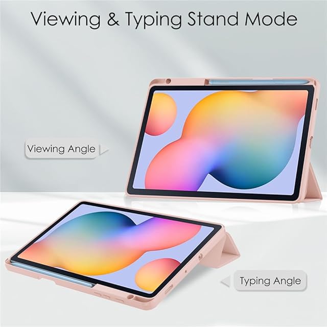 Galaxy Tab S6 Lite 10.4インチ ケース 背面透明 クリア S Pen 収納 充電対応 オートスリープ 3つ折りスタンド Android タブレット ギャラクシー Tab S6 Lite カバー 透明 耐衝撃 軽量 (Tab S6 Lite, ピンク)