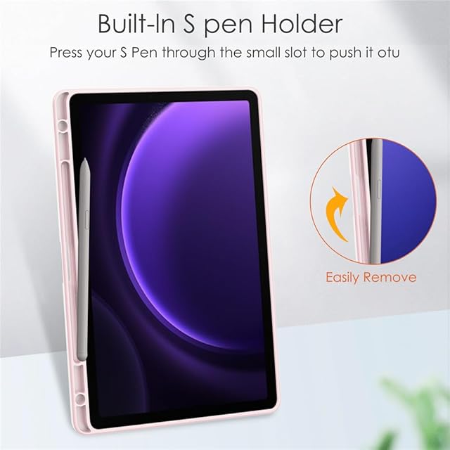Galaxy Tab S9 FE 10.9インチ ケース Tab S9 11インチ カバー 背面透明 クリア S Pen 収納 充電対応 オートスリープ 3つ折りスタンド Android タブレット ギャラクシー Tab S9 fe ケース 透明 耐衝撃 軽量 (Tab S9 / Tab S9 FE, ピンク)