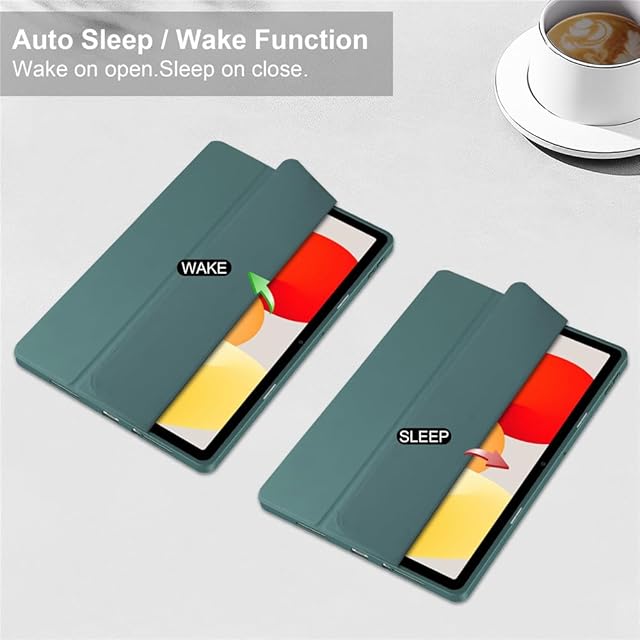 2023年発売 Redmi Pad SE 11インチ ケース 背面クリア 透明 ペンホルダー付き redmi pad se カバー タブレットケース オートスリープ機能付き 三つ折りスタンド 耐衝撃 軽量 (Redmi Pad SE, 深緑)