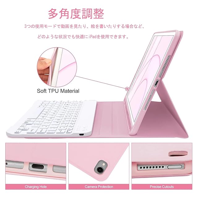 【脱着式キーボード&省電力デザイン】bluetoothキーボードは分離式で、単独で使用することが可能です。ケースに強力なマグネットを内蔵し、分離式キーボードをしっかり吸着でき、キーボードが落ちにくいです。Android/Windows/iOS三つシステムをサポート、ボタンを押すだけで切り替えることができます。ipad 6世代 キーボード ケースは自動オートスリープと自動ウェイクアップの機能搭載なので、電池の消耗を軽減させます。iPadケースを開閉すると、iPadは自動的にウェイクモードまたはスリープモードになります。 (ご注意:商品にペンは含まれていません)