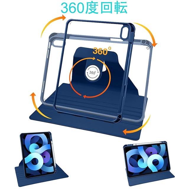 iPad 10 ケース 10.09 インチ - 360°回転保護スタンドカバー 自動ウェイクスリープ機能付き かわいい ペン収納 透明 バックシェル iPad 10 A2696/A2757/A2777 NanHou - マリンブルー
