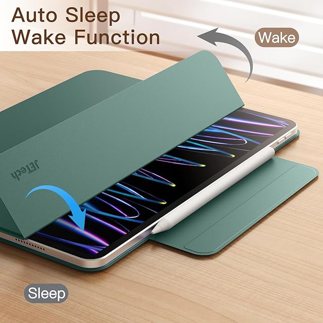 JETech iPadPro12.9インチ ケース モデル 2022/2021/2020/2018モデル マグネットス吸着式 Pencil2対応 三つ折スタンド オートウェイクアップ/スリープ機能iPad Pro 12.9 6/5/4/3用 (ミスティブルー)