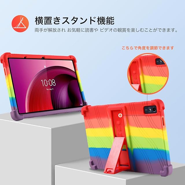 【2023年発売】Lenovo Tab7 用 ケース カバー スタンド機能付き【RIGFUJUN】 保護ケース 衝撃吸収 シリコン製 耐汚れ 耐衝撃 薄型 軽量 擦り傷防止 手触りが良い (レインボー)