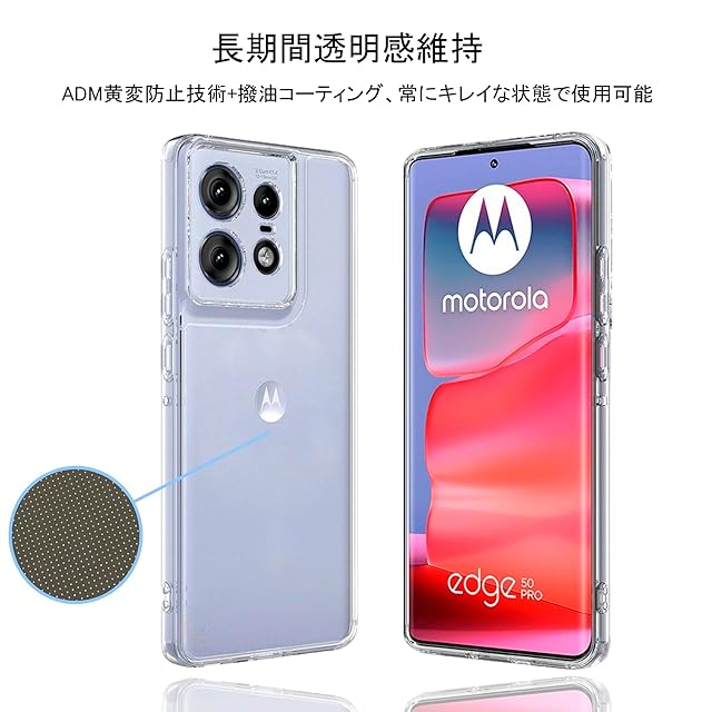 【Motorola Moto Edge 50 pro専用】ハイクオリティ透明保護ケースラップホール搭載