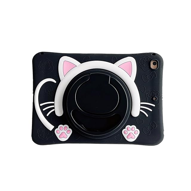 CrazyLemon 適用 iPad Mini 3/2/1 ケース 360度回転 リング付き 縦置き 横置き スタンド機能 付き 可愛い かっこいい 白い 猫の耳 デザイン 薄型 軽量 ブラック ソフト シリコーン アイパッド ミニ 第3/2/1世代 保護ケース 耐衝撃 カバー 女性/男性 大人/子供 人気