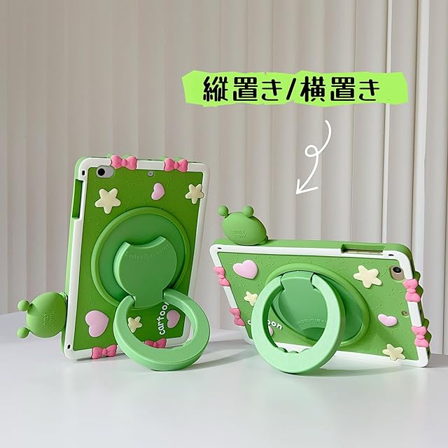 CrazyLemon 適用 iPad Mini 3/2/1 ケース かわいい 360度回転 リング付き スタンド機能 ショルダー ストラップ 付き、 超可愛い おしゃれ アニメ カエル アヒル デザイン 薄型 軽量 ソフト シリコーン アイパッド ミニ 第6世代 保護 ケース カバー 衝撃吸収 レディース 女性 大人/子供 人気