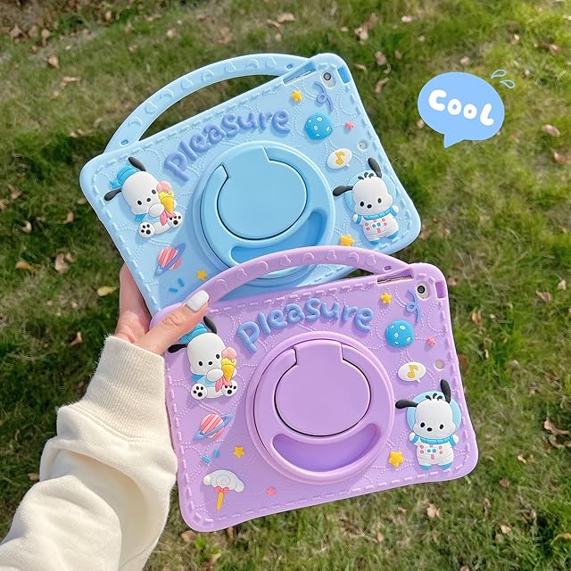 CrazyLemon 適用 iPad Mini 3/2/1 ケース かわいい 360度回転 リング付き スタンド機能/ショルダー ストラップ/ペン収納 ホルダー 付き、 可愛い おしゃれ アニメ 犬 キャラクター デザイン ソフト シリコーン アイパッド ミニ 第6世代 ブルー ケース 保護カバー 耐衝撃 女性 大人/子供 人気
